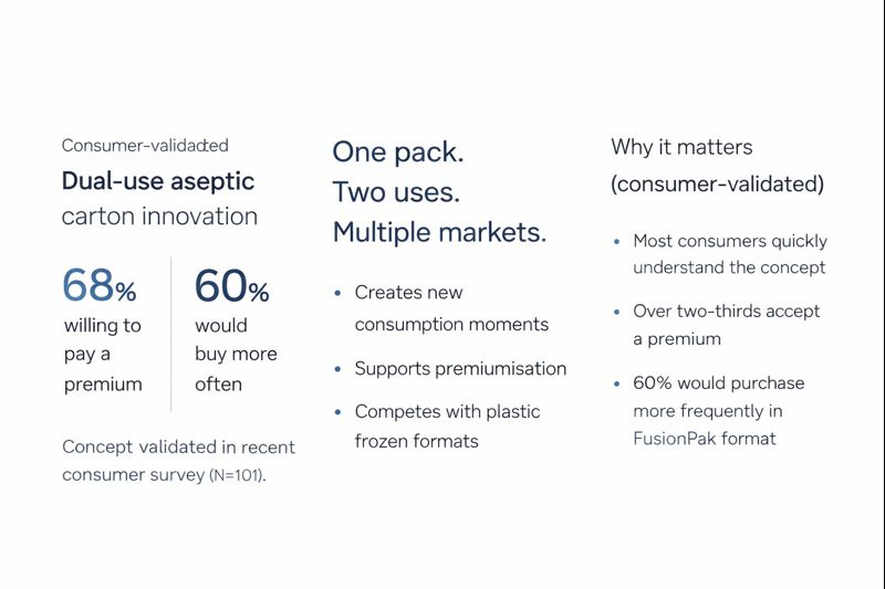 It allows brands and packaging partners to create new consumption moments, support premiumisation, extend portfolios without reformulation, and compete with plastic-based frozen formats using a carton-based solution.